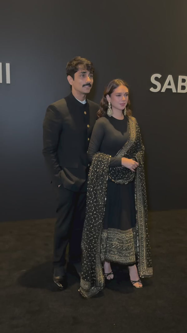 The gown features heavy embroidery and sequence work that adds a luxurious and glamorous appeal. Made from premium fox georgette fabric with a soft micro cotton inner lining, it offers both comfort and style for long wear.